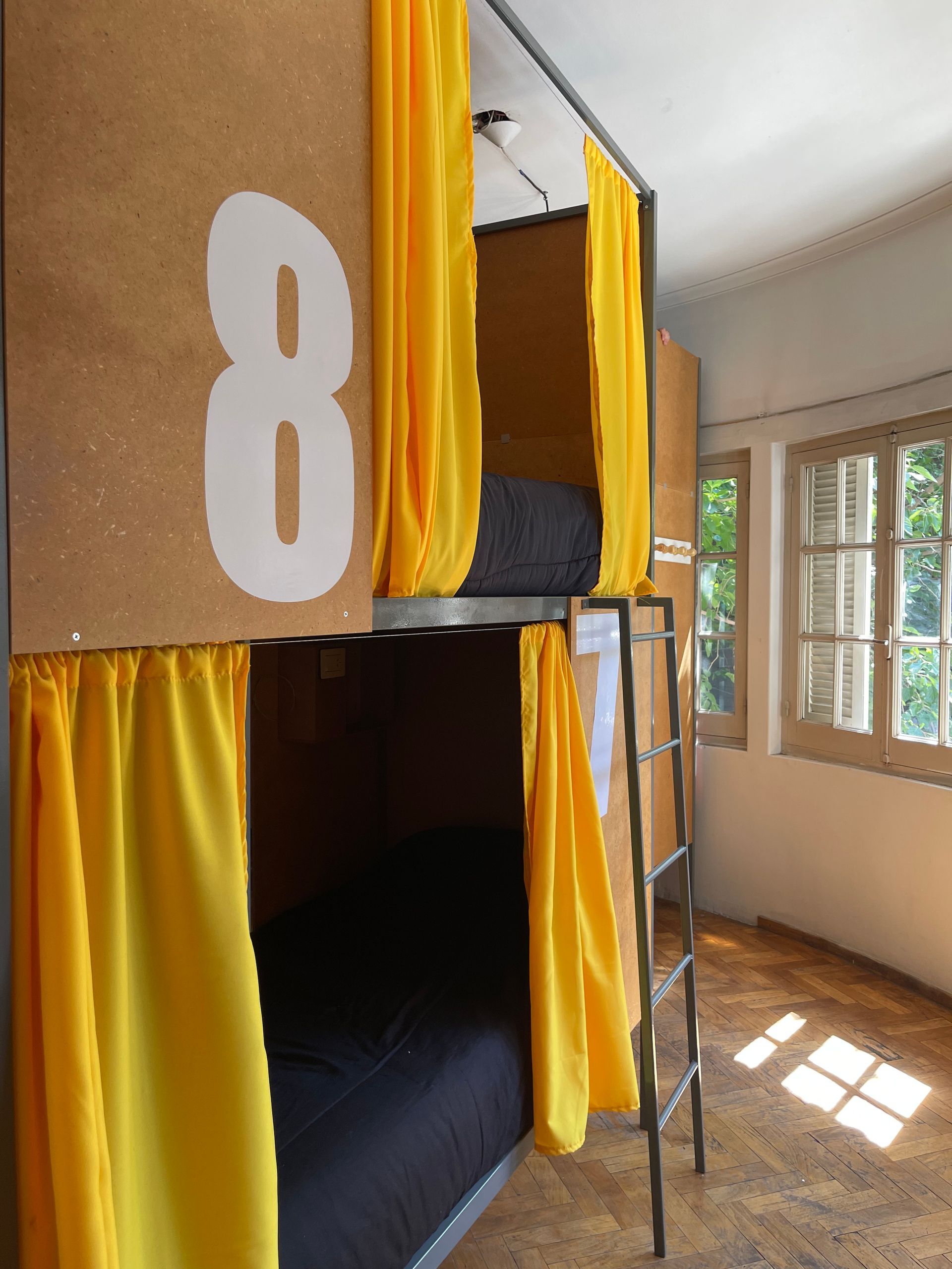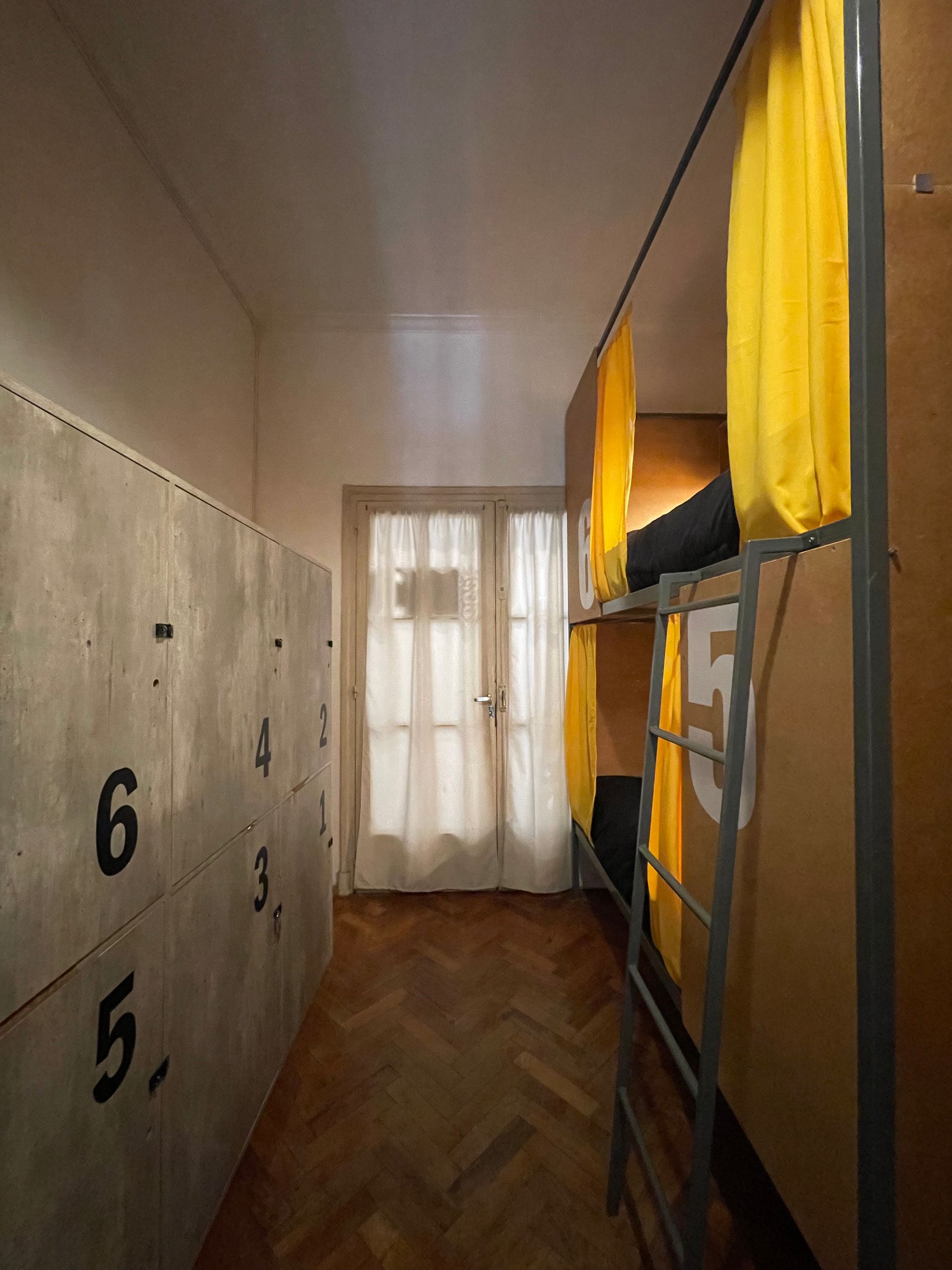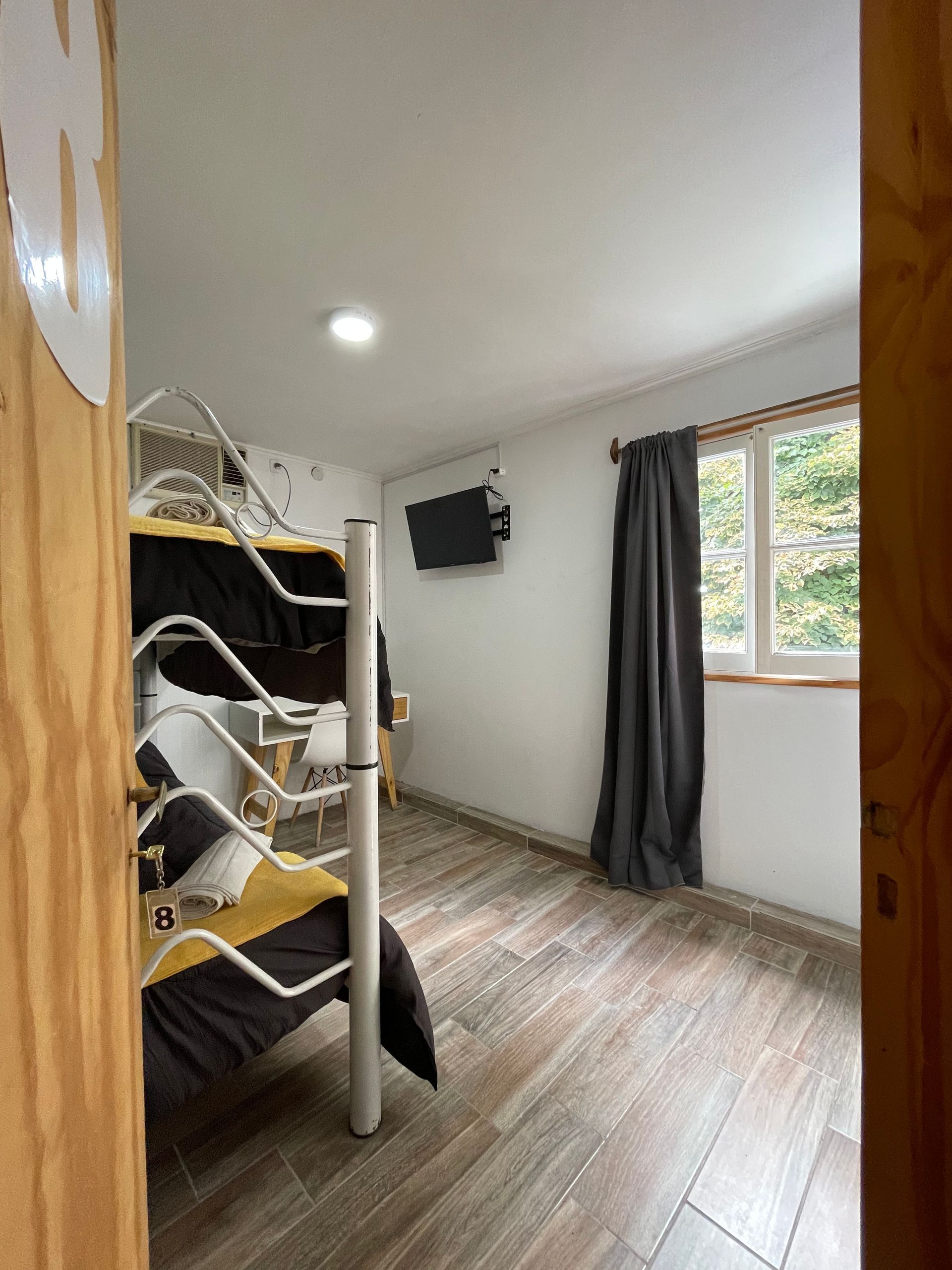 Habitación amplia con grandes ventanales orientados a la calle. Baño exclusivo. Cuenta con 4 cuchetas y grandes lockers para guardar los bolsos y elementos personales. Luz de noche y enchufe individual.