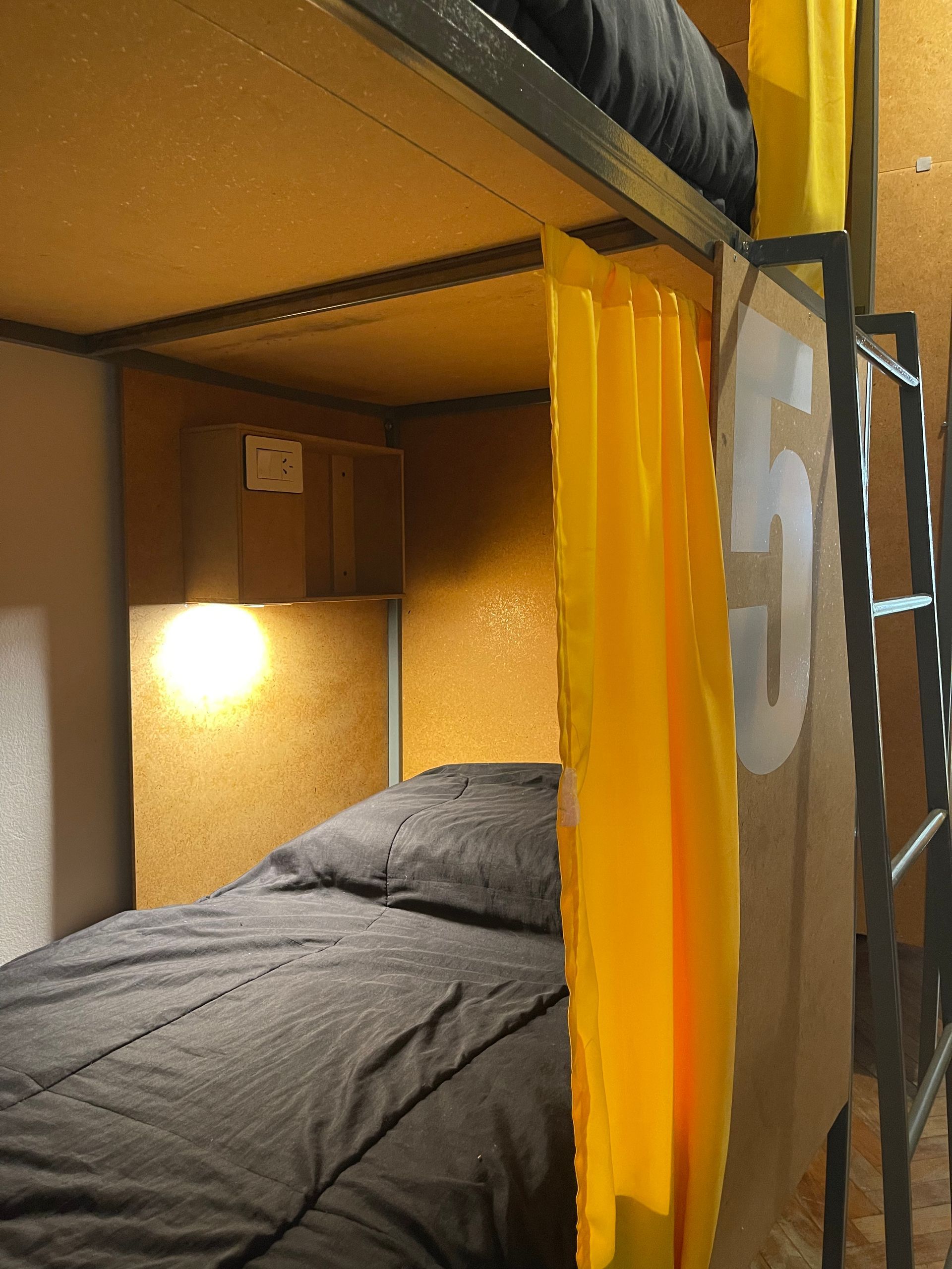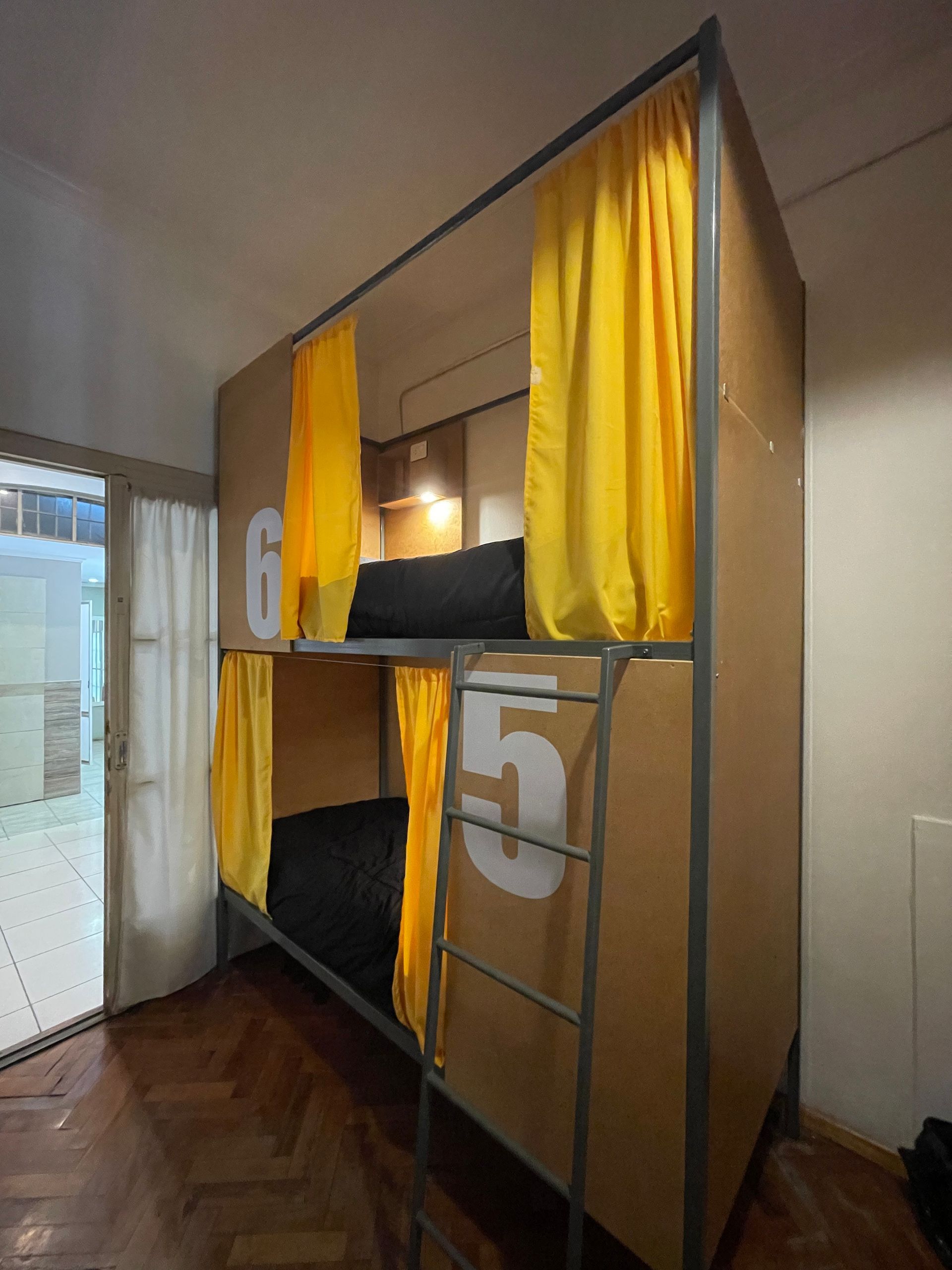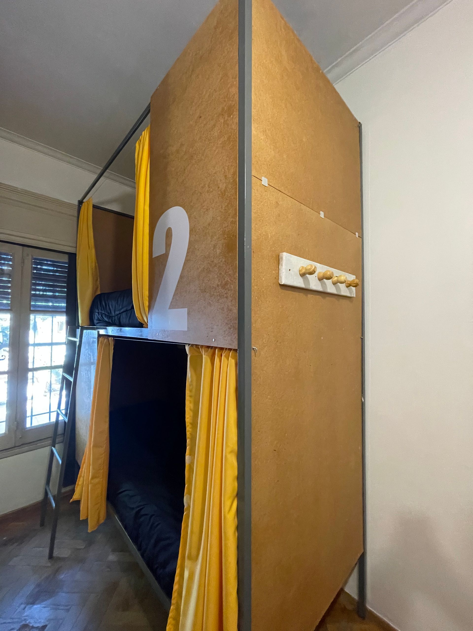 Habitación privada de 4 camas estilo box, con lockers, enchufes y luces individuales. Baño compartido. Blanquería y desayuno incluidos!