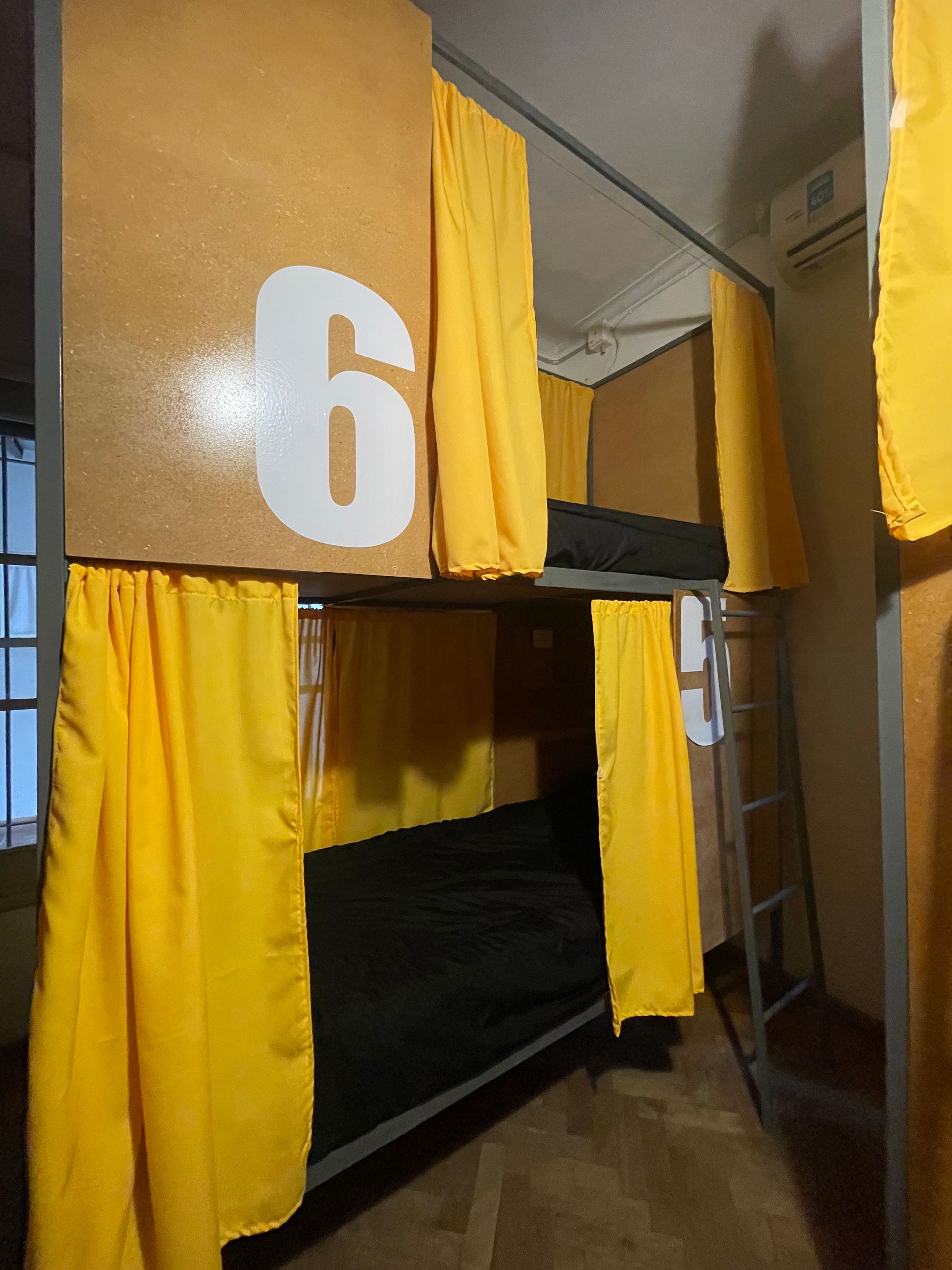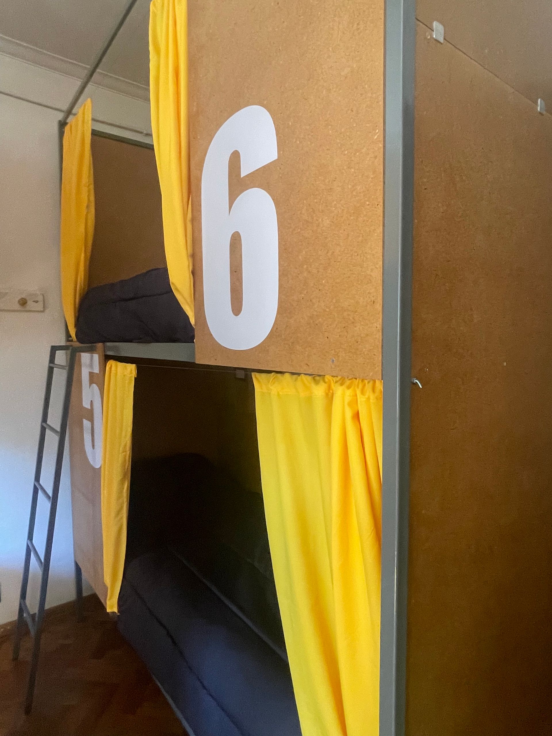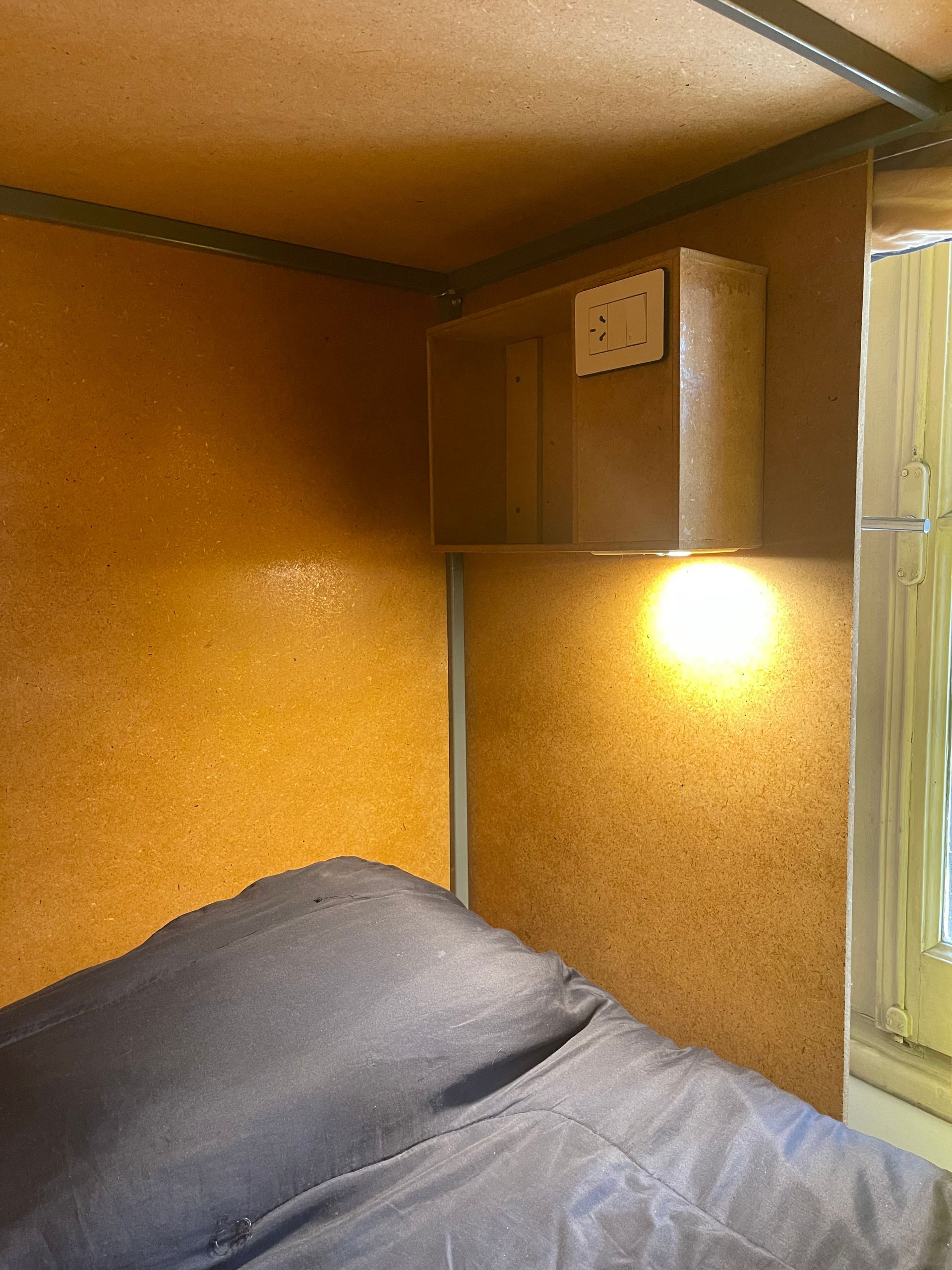 Habitación privada de 4 camas estilo box, con lockers, enchufes y luces individuales. Baño compartido. Blanquería y desayuno incluidos!